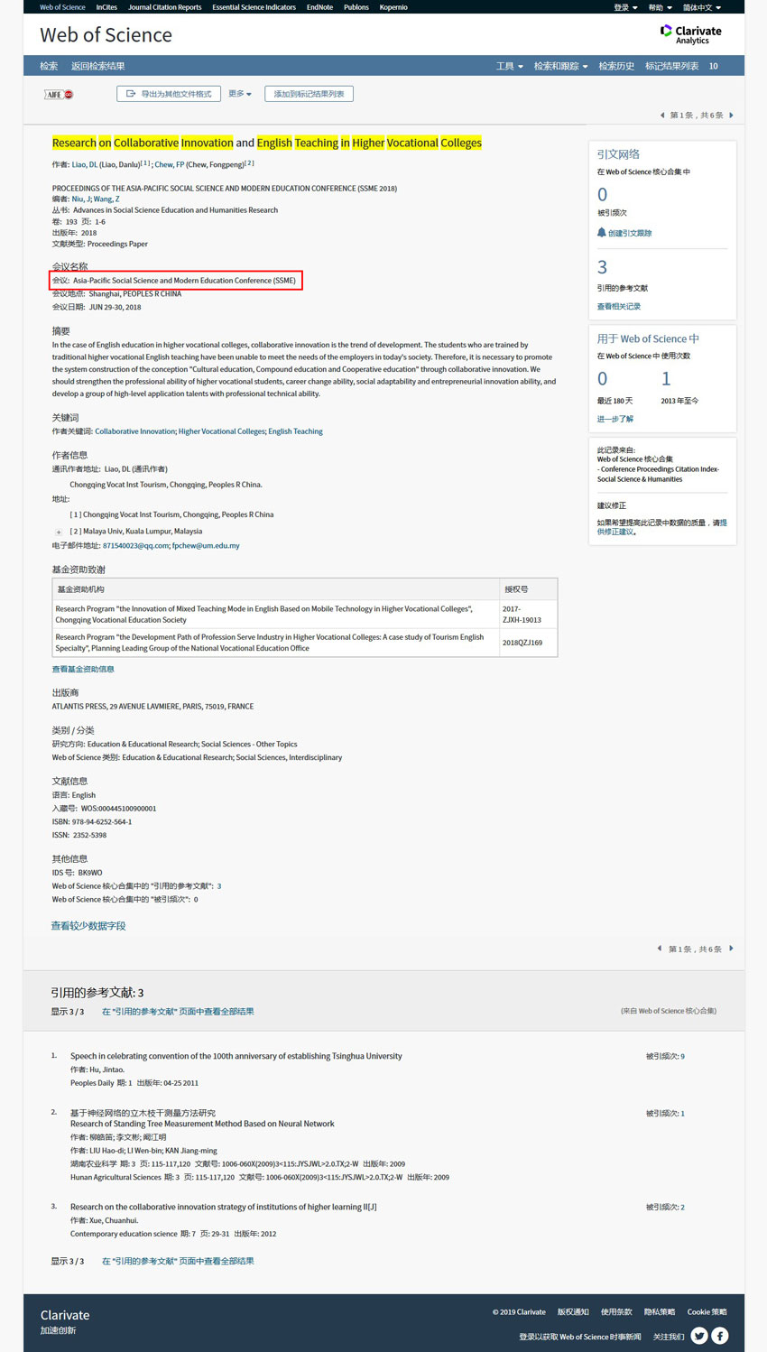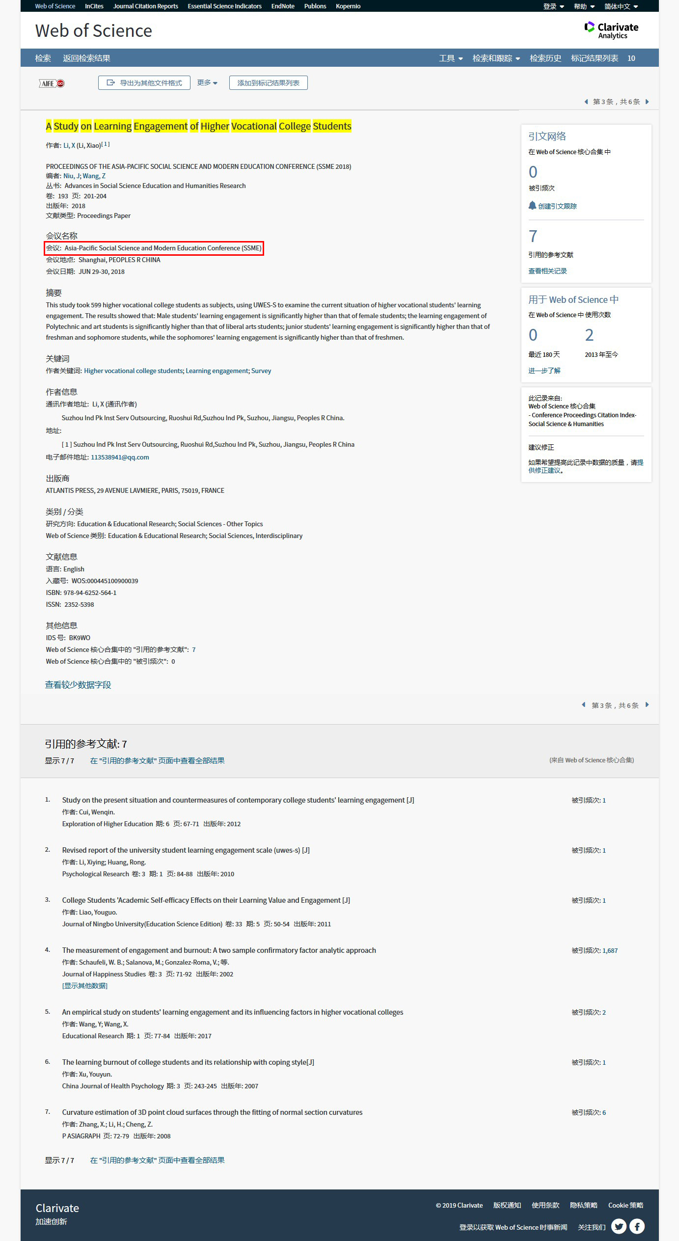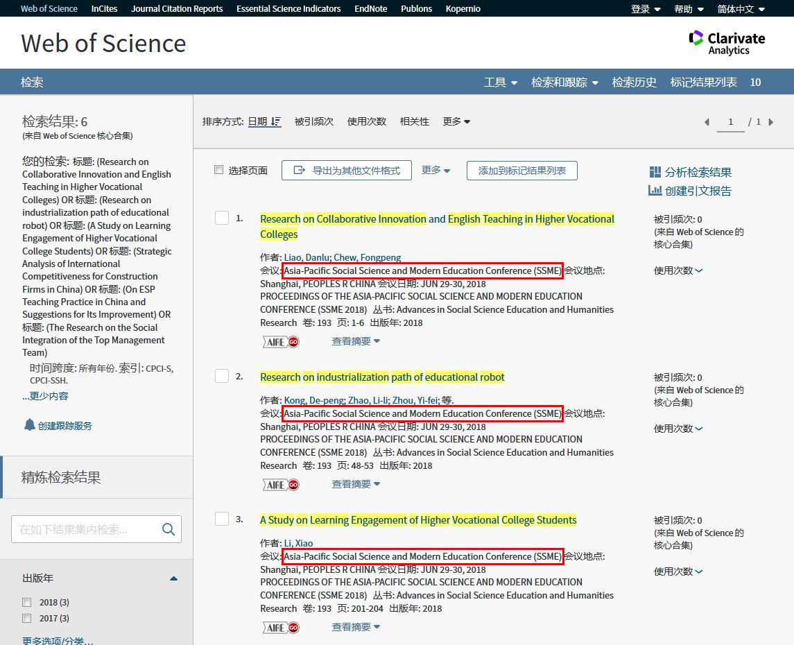 All papers of SSME2018 have been indexed by CPCI-SSH