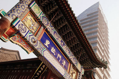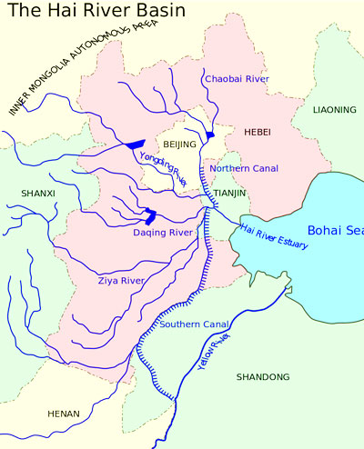 In terms of urban population, Tianjin is the fourth largest in China, after Tianjin, Beijing, and Guangzhou. In terms of administrative area population, Tianjin ranks fifth in Mainland China.[7] The walled city of Tianjin was built in 1404. As a treaty port since 1860, Tianjin has been a major seaport and gateway to Beijing. During the Boxer Rebellion the city was the seat of the Tianjin Provisional Government. Under the Qing dynasty and the Republic of China, Tianjin became one of the largest cities in the region.[8] At that time, numerous European-style buildings and mansions were constructed in concessions, many of which are well-preserved today. After the founding of the People's Republic of China, Tianjin suffered a depression due to the policy of the central government and Tangshan earthquake, but recovered from 1990s.[9] Nowadays Tianjin is a dual-core city, with its main urban area (including the old city) located along the Hai River, which connects to the Yellow and Yangtze Rivers via the Grand Canal; and Binhai, an adjacent New Area urban core located east of the old city, on the coast of the Bohai Gulf. As of the end of 2010, around 285 Fortune 500 companies have set up base in Binhai. Since 2010, Tianjin's Yujiapu Financial District has become known as China's Manhattan.[10][11]