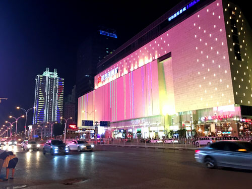 A night sight near a modern shopping mall in Hongshan District